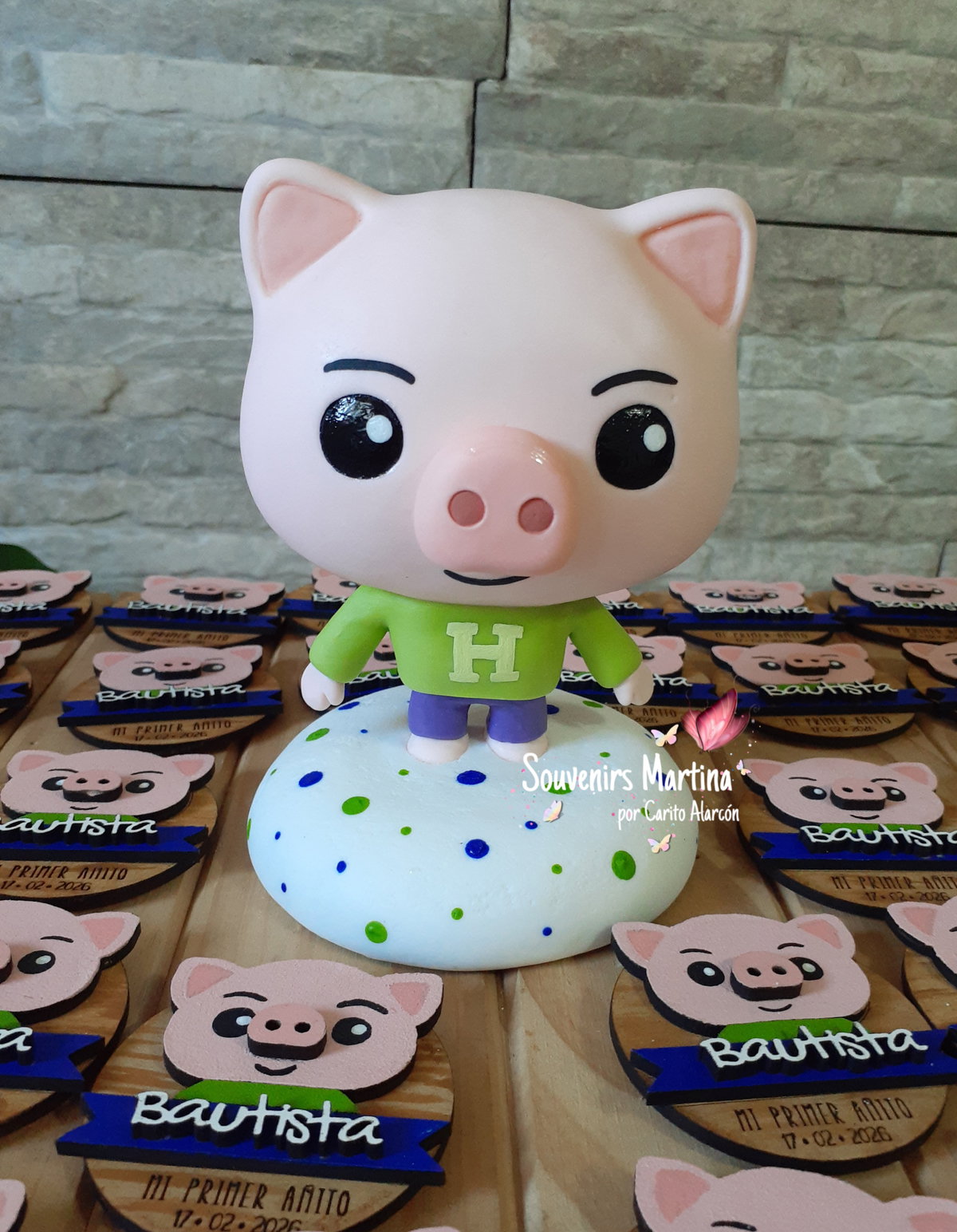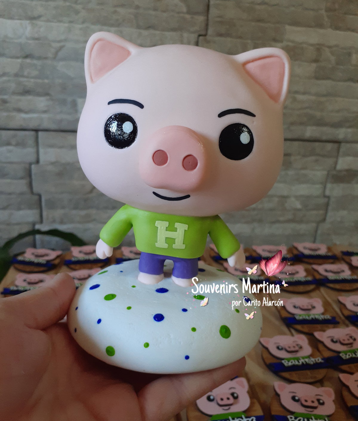 Adorno con BASE. Realizado en porcelana fría del cerdito Hoggie.