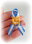Escarapela con dije de Pastelito, realizado en porcelana fría.