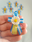 Escarapela con dije de Margarita, realizado en porcelana fría y con cinta dorada.