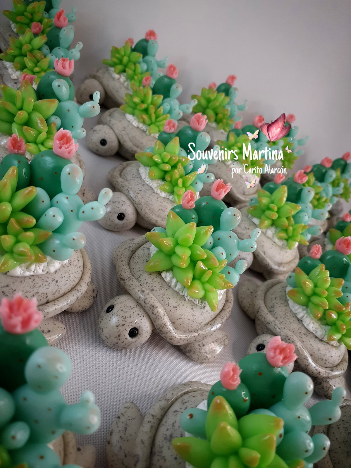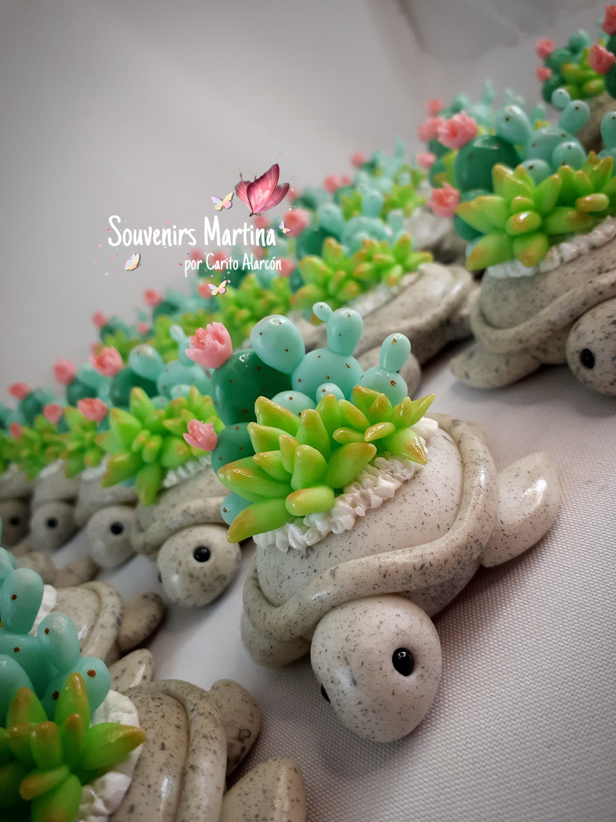 Souvenirs Tortuguita con suculentas. Realizada en porcelana fría. El precio corresponde a 10 unidades.