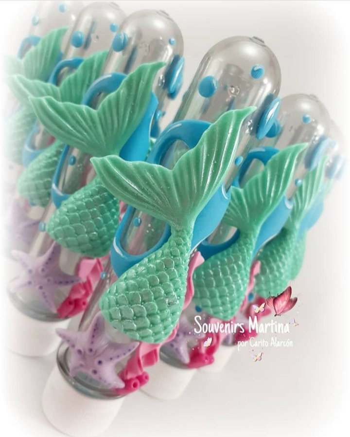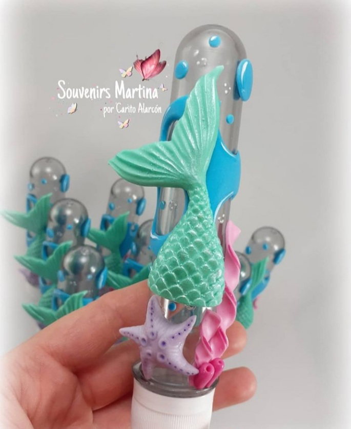 Tubo golosinero Cola de Sirena. Realizada en porcelana fría. El precio corresponde a 10 unidades.