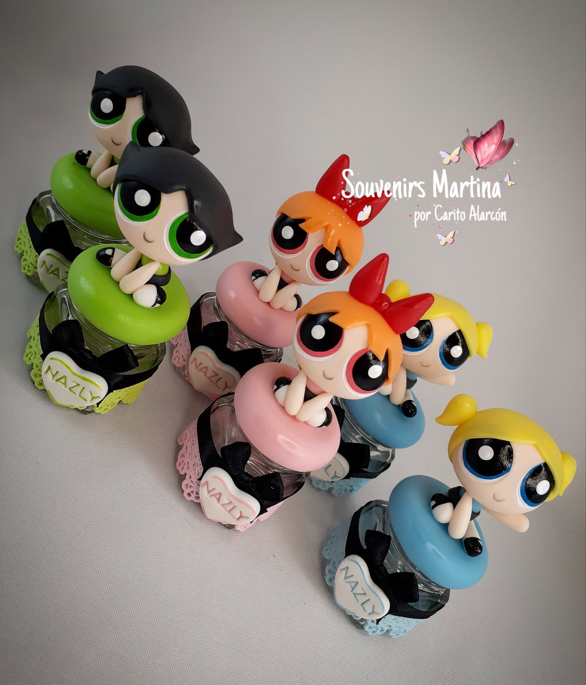Souvenirs Frasquito 40cc Chicas superpoderosas. Realizado en porcelana fría.
