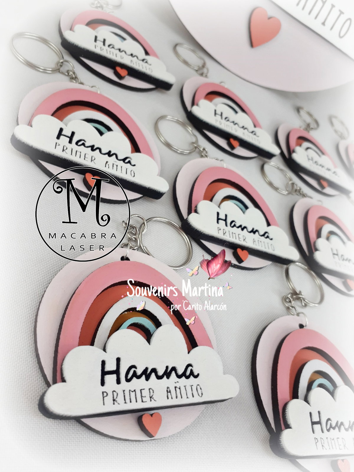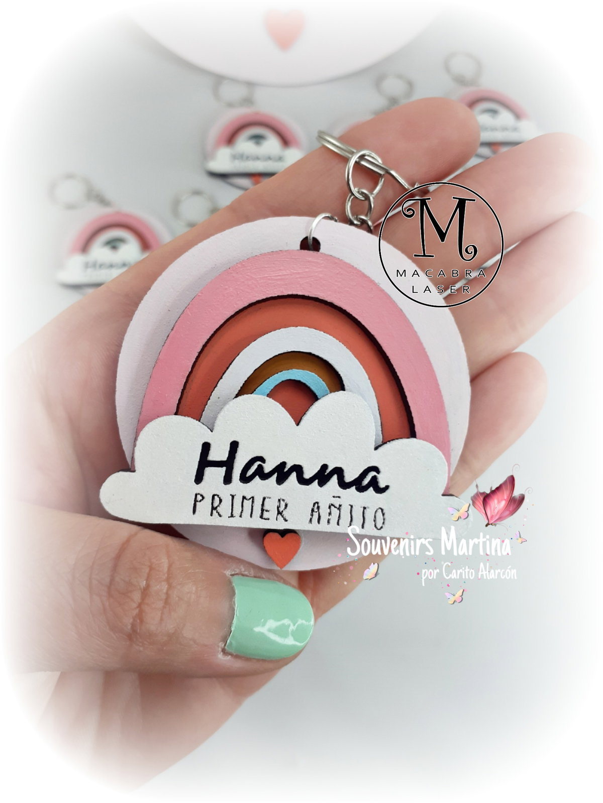 Llavero motivo Arcoiris realizado en MDF (madera fibrofacil), pintado a mano.