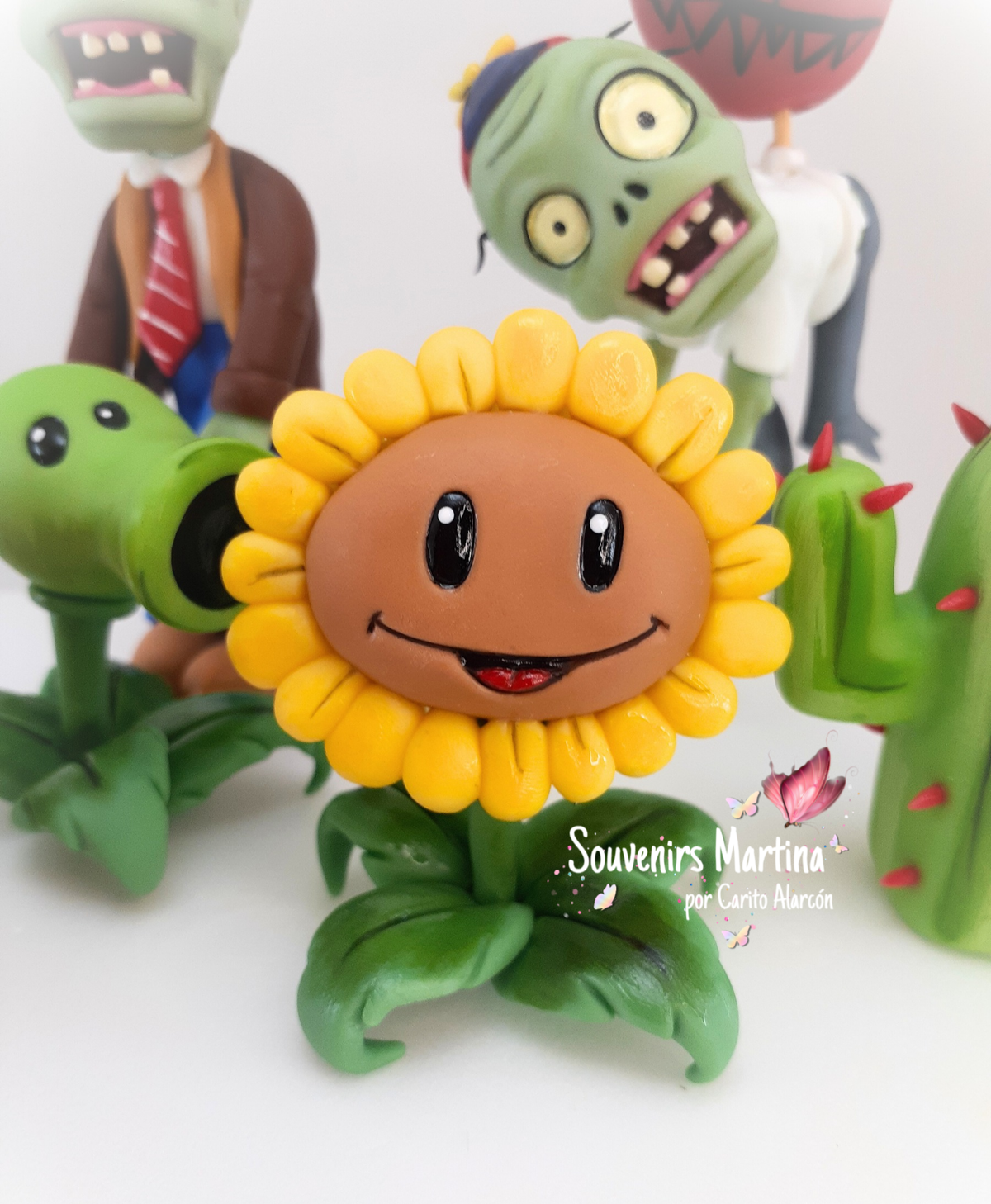 Adorno para pinchar directamente en la torta. Realizado en porcelana fría. Incluye: 4 plantas 7cm apróx. , y 2 zombies