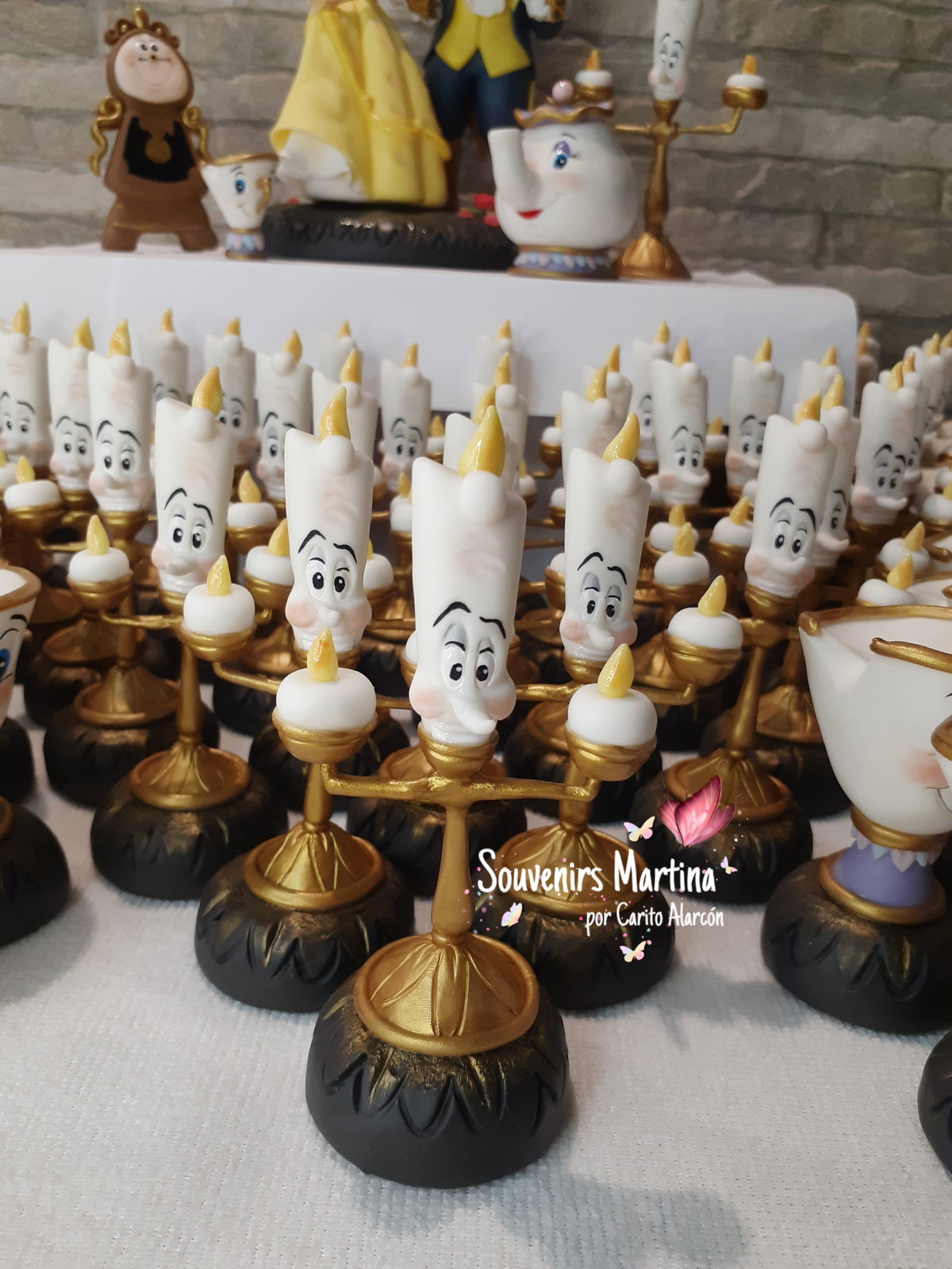 Souvenirs Lumiere de la Bella y la Bestia. Realizados en porcelana fría. Miden 9cm de alto apróx.
